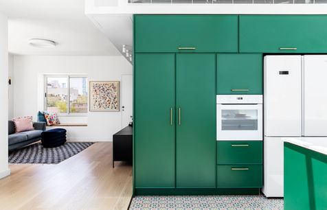 בני הזוג רכשו את הדופלקס שהיה מעוצב בטעם שונה ומיושן מעט. הכל היה מלא בשיש ועץ וגם התכנון לא הלם את האופי של המשפחה הצעירה. אביה של הלקוחה הוא אדריכל והוא כבר תכנן את המבנה החדש של הבית. כשנכנסתי לתמונה כבר היה ברור שיחידת ההורים שהיתה למעלה - עוברת למטה, ליד חדרי הילדים, וחלל המטבח והסלון עובר למעלה. מהפך של ממש. בקומת הכניסה יש חלל אירוח וטלויזיה, מטבחון, שני חדרי שינה לילדים, יחידת הורים, חדר רחצה, חדר כביסה וכן חדר עבודה. בקומה העליונה יש מטבח ומעליו סקייליייט מהמם, פינת אוכל, סלון, שירותים קטנים ומטריפים וכמובן מרפסת שמש נעימה.